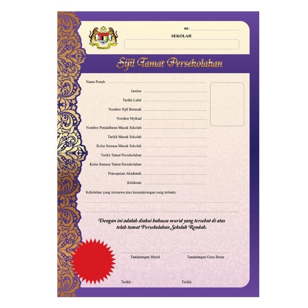 Sijil Tamat Persekolahan 30pcs Set Sijil Berhenti Sekolah Shopee Malaysia