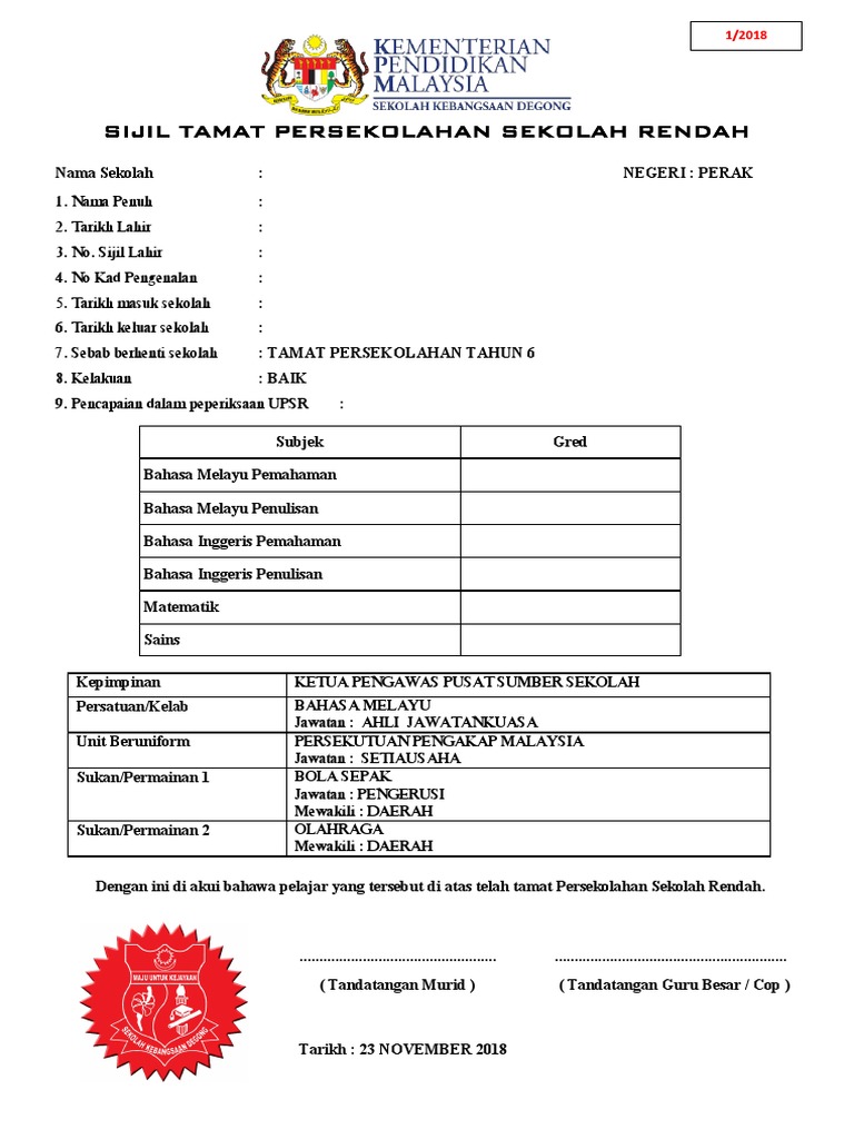 Sijil Tamat Sekolah Rendah 2020 Pdf